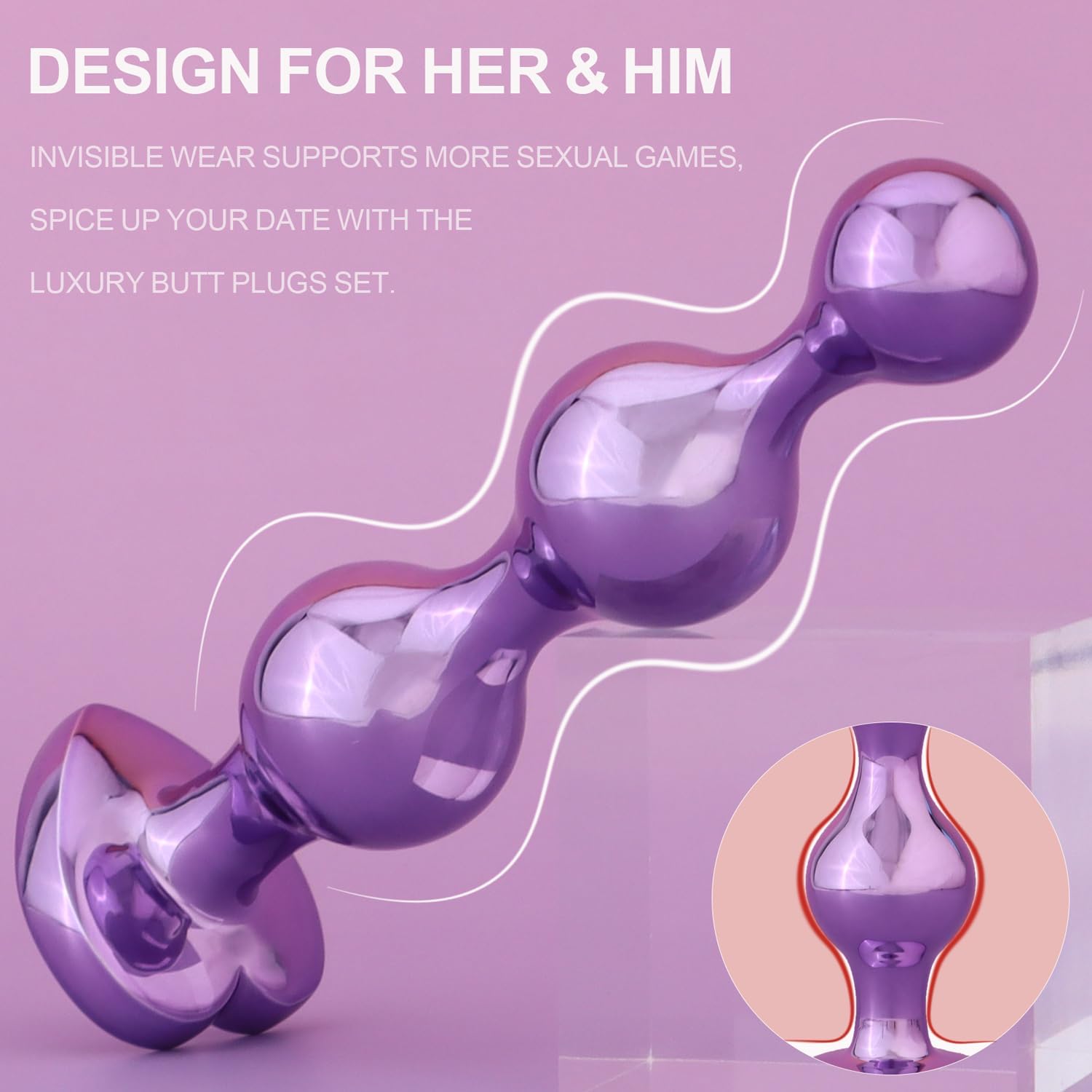 3Pcs Metal Anal Plugs Adult Sex Toys Alloy Heart Base Jewelry Design for Couples